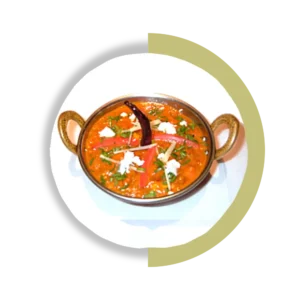 自家製チーズとグリーンピースを絡めたトマトとカシュナッツベースをブレンドしたカレーです。