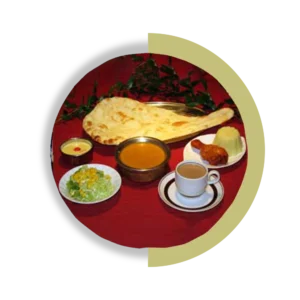 タンドリー料理が3つも付いた、贅沢にインド料理を堪能できる、 日替わりカレーのセットです。 下表の A・B・C・D・E から、お好きなカレーを1種類セレクトできます。 ナン、サフランライス、タンドリーチキン、チキンチッカ、 シークカバブ、サラダ、日替わりデザート、ソフトドリンク 付き