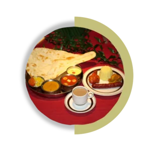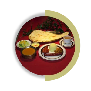 タンドリー料理が3つも付いた、贅沢にインド料理を堪能できる、日替わりカレーのターリーセットです。 下表の A・B・C・D・E から、お好きなカレー(小)を2種類セレクトできます。 ナン、サフランライス、タンドリーチキン、チキンチッカ、 シークカバブ、サラダ、日替わりデザート、ソフトドリンク 付き